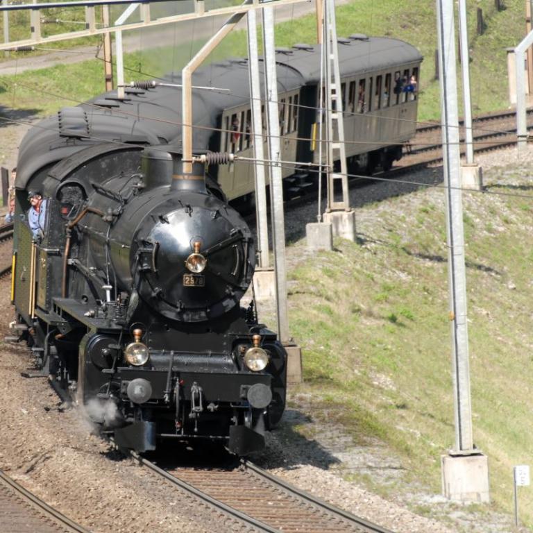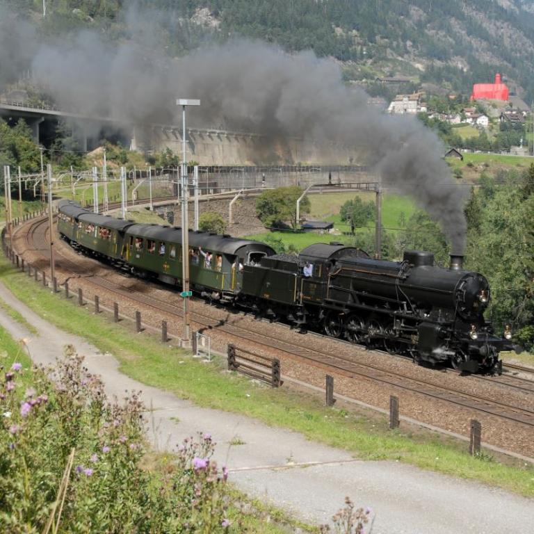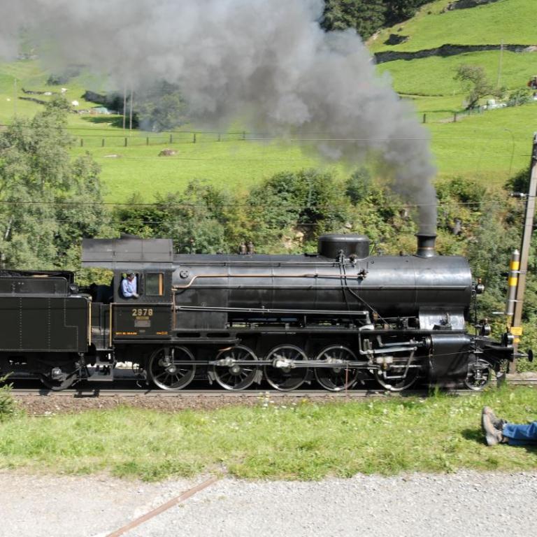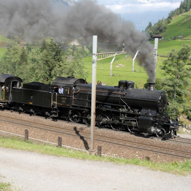 Gotthard-Dampflokomotive Serie C 5/6 "Elefant" der Schweizerischen Bundesbahnen (SBB), mit 3-achsigem Schlepptender, für den Einsatz im Güter- und Schnellzugverkehr auf der Gotthard-Strecke. Betriebsnummer 2965, heute noch im Verkehrshaus in Luzern ausgestellt. Als Gotthard-Lokomotive vor genau 100 Jahren im Jahr 1916 gebaut.