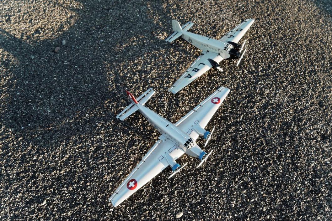 Kurz vor Kriegsbeginn 1939 wurden drei Ju 52 als Transportflugzeuge an die Schweizer Armee geliefert. Dort wurden diese Flugzeuge über 40 Jahre eingesetzt. Besonders beliebt in der Bevölkerung wurden diese Flugzeuge bei Ihrem Katastropheneinsatz im Winter 1951. In diesem sehr schneereichen Januar konnten verschiedene Gemeinden und Höfe nur noch über die Luft mit den notwendigen Lebensmitteln oder Brennstoffen versorgt werden. 1982 wurde ein Verein zum Erhalt der drei nostalgischen Flugzeuge gegründet. Durch Spenden konnten die Modelle aufgearbeitet werden und stehen seit diesem Zeitpunkt für Rundflüge zur Verfügung. Zum 60. Geburtstag dieser drei "alten Damen" erscheint in diesem Jahr einmalig dieses Modell, dessen Basis die Märklin Ju 52 aus den 30er Jahren darstellt.
