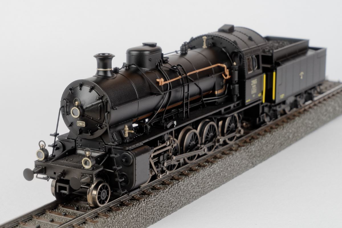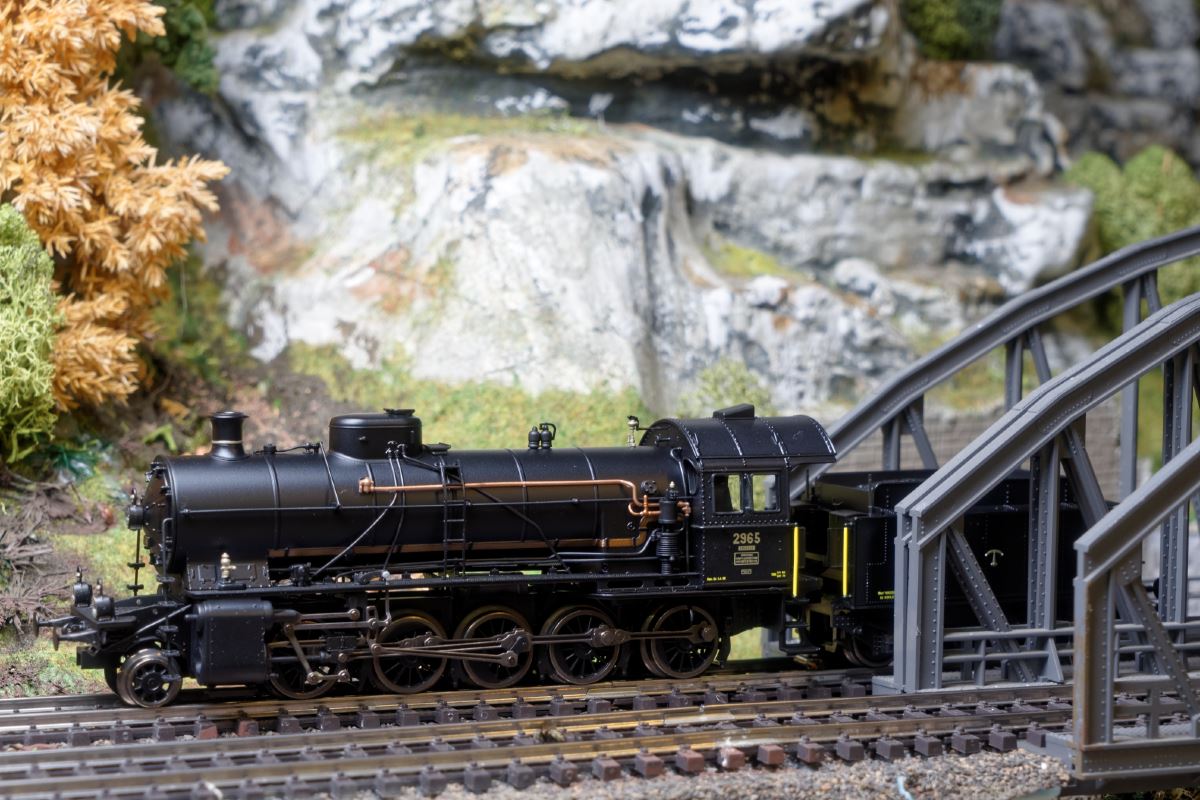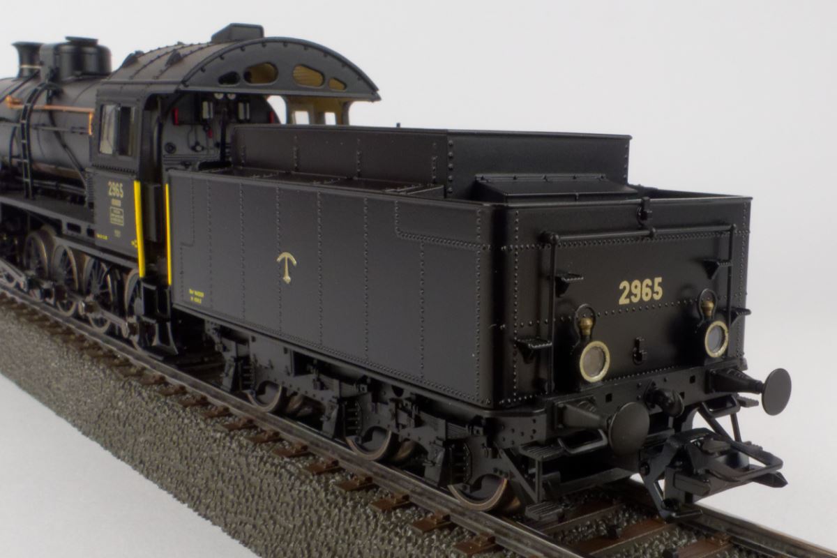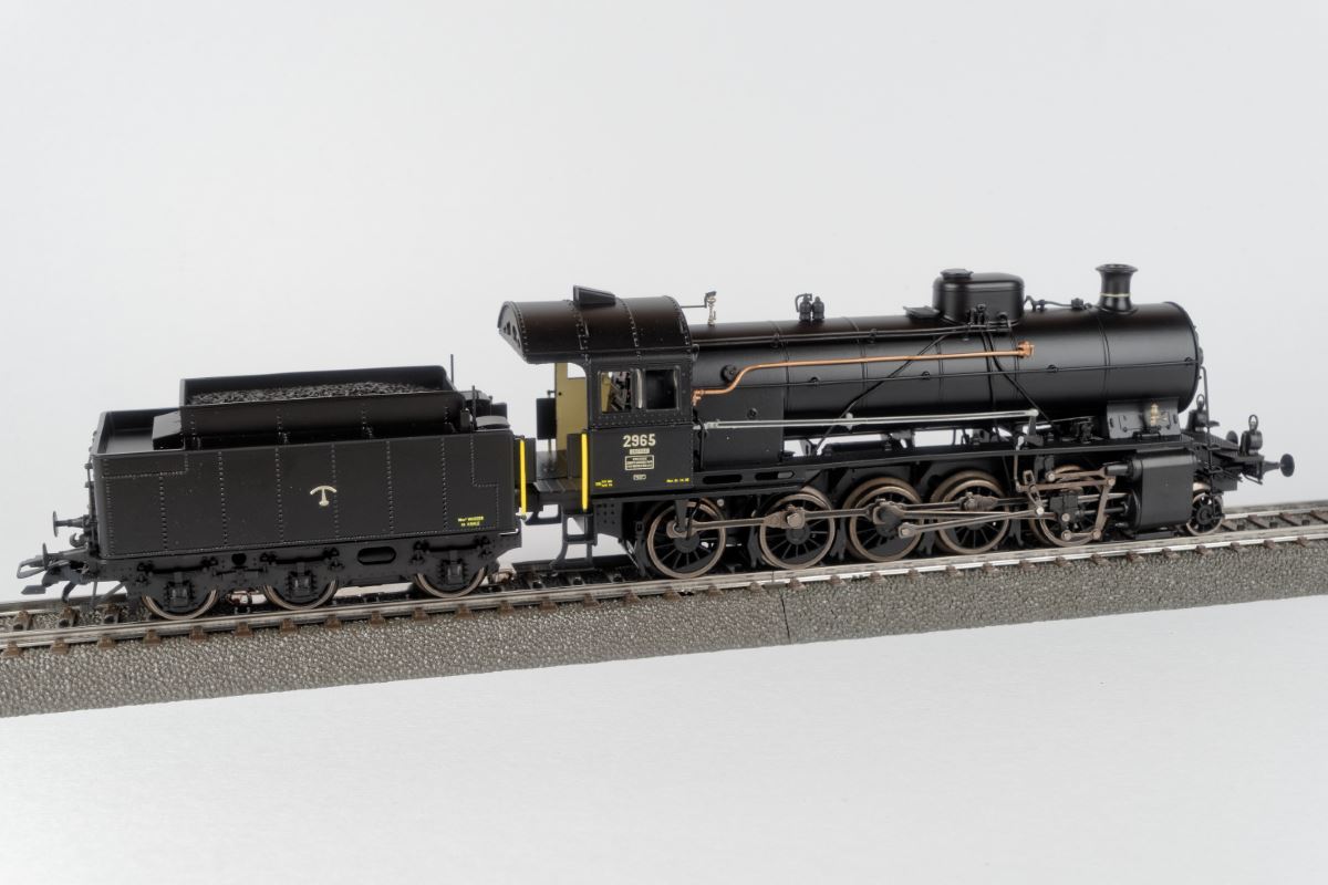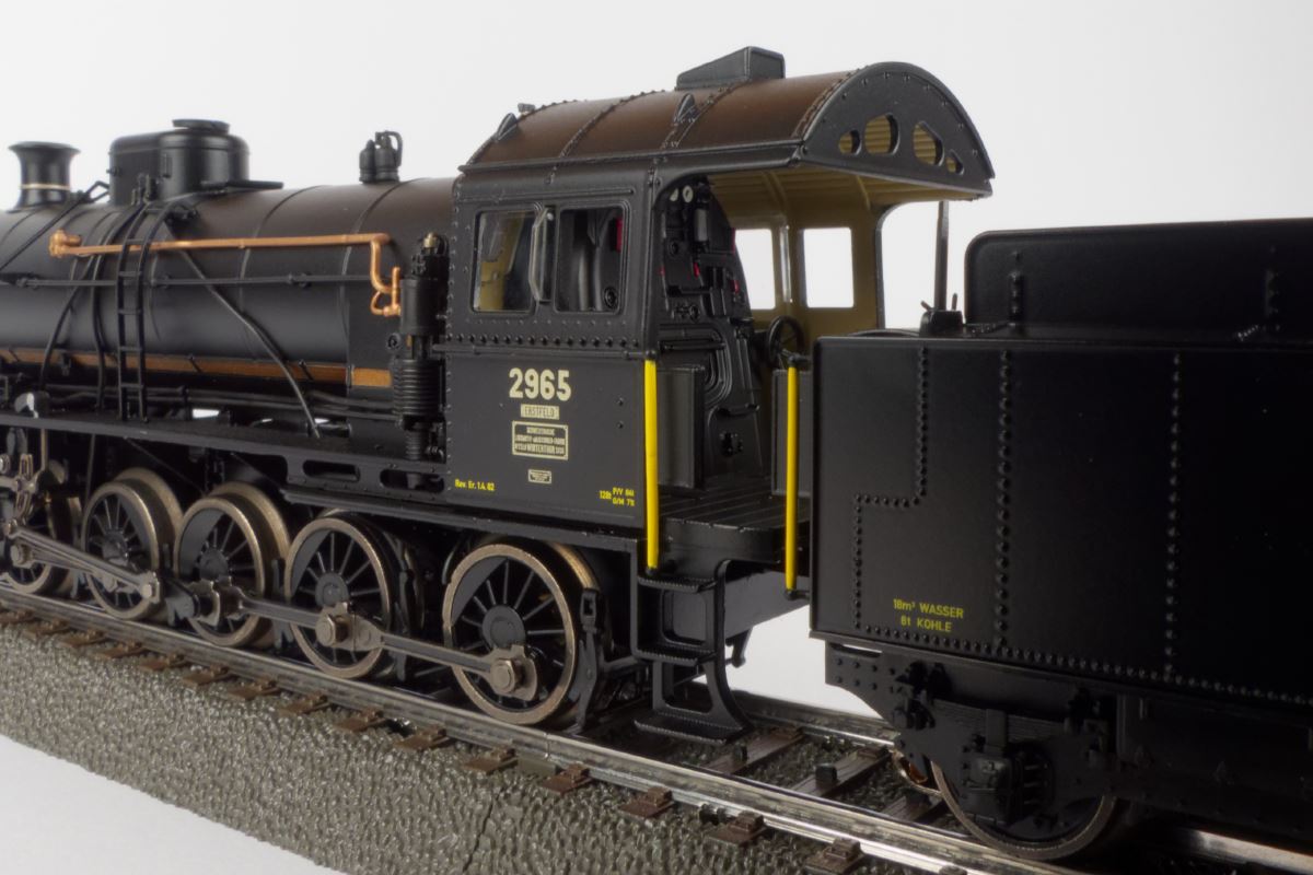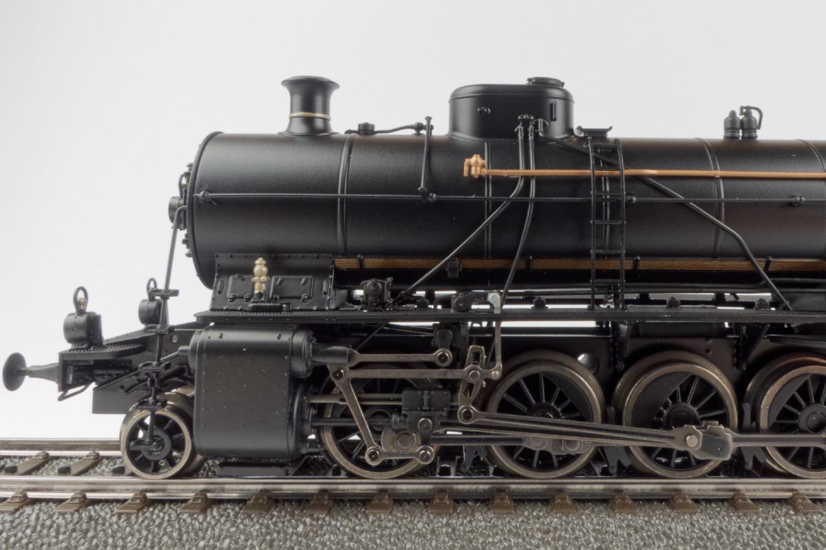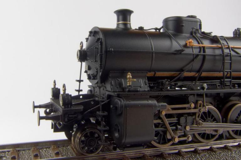Modell: Mit Digital-Decoder mfx+ und umfangreichen Geräuschfunktionen. Geregelter Hochleistungsantrieb mit Schwungmasse im Kessel. 5 Achsen angetrieben. Haftreifen. Lokomotive und Tender weitgehend aus Metall. Rauchsatz 72270 ist serienmäßig eingebaut. Fahrtrichtungsabhängig wechselndes Dreilicht-Spitzensignal an der Lok und 2 Lichter am Tender sowie eingebauter Rauchsatz konventionell in Betrieb, digital schaltbar. Zusätzlich ist die Führerstandbeleuchtung digital schaltbar. Beleuchtung mit wartungsfreien warmweißen Leuchtdioden (LED). Verstellbare Kupplung mit Kinematik zwischen Lok und Tender. An der Vorderseite der Lok und am Tender Kurzkupplung mit NEM-Schacht, am Tender kinematikgeführt. Befahrbarer Mindestradius 360 mm. Kolbenstangenschutzrohre und Schraubenkupplungsimitationen liegen bei. Länge über Puffer 22,3 cm.