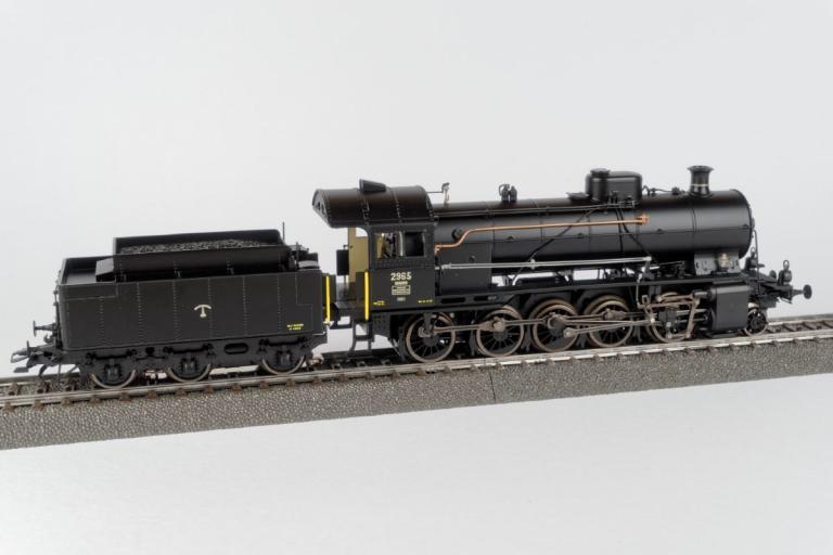 Gotthard-Dampflokomotive Serie C 5/6 "Elefant" der Schweizerischen Bundesbahnen (SBB), mit 3-achsigem Schlepptender, für den Einsatz im Güter- und Schnellzugverkehr auf der Gotthard-Strecke. Betriebsnummer 2965, heute noch im Verkehrshaus in Luzern ausgestellt. Als Gotthard-Lokomotive vor genau 100 Jahren im Jahr 1916 gebaut.
